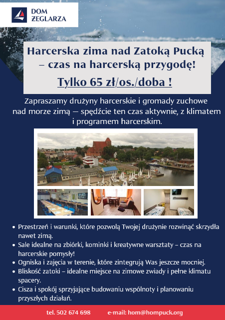Wszystkie informacje zawarte na stronie internetowej Harcerskiego Ośrodka Morskiego, w tym w szczególności cenniki, oferty, oferty specjalne mają charakter ogólnej informacji handlowej, mającej przybliżyć Usługobiorcy działalność Harcerskiego Ośrodka Morskiego. Informacje te nie mogą być traktowane jako oferta w rozumieniu art. 66 § 1 polskiego Kodeksu cywilnego i jako takie nie są wiążące dla HOM Puck ZHP. Stanowią one jedynie zaproszenie do rokowań w rozumieniu art. 71 polskiego Kodeksu cywilnego.